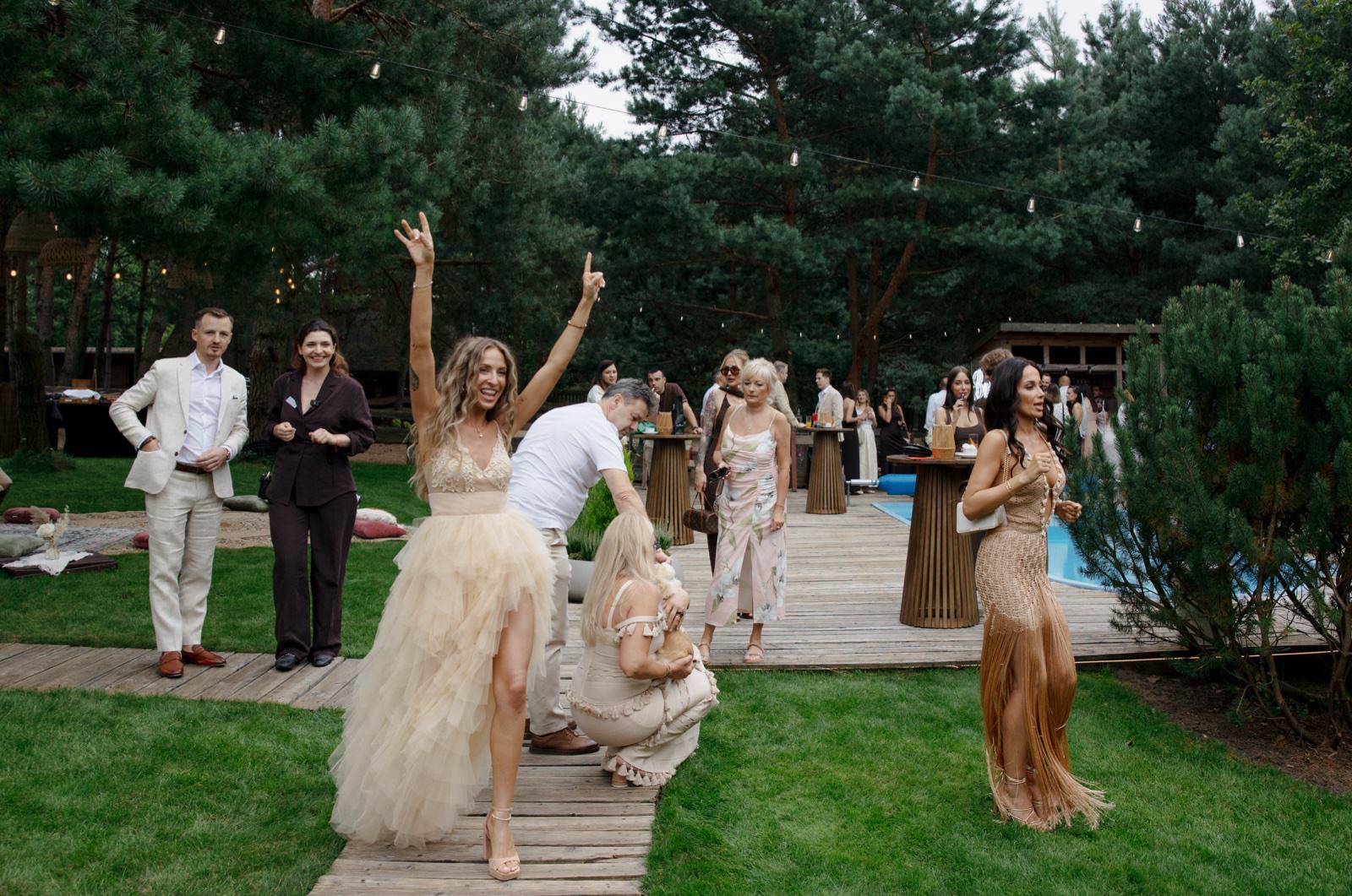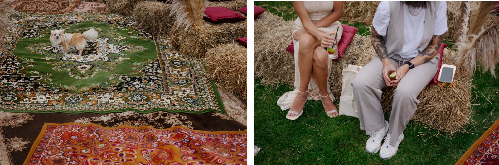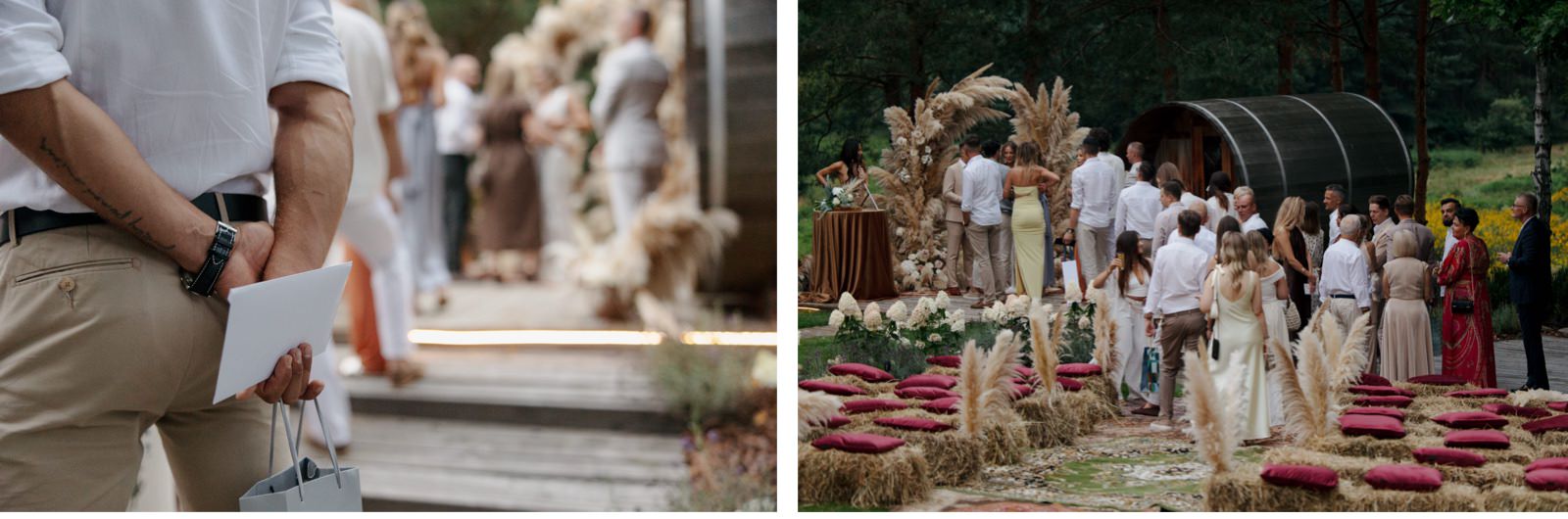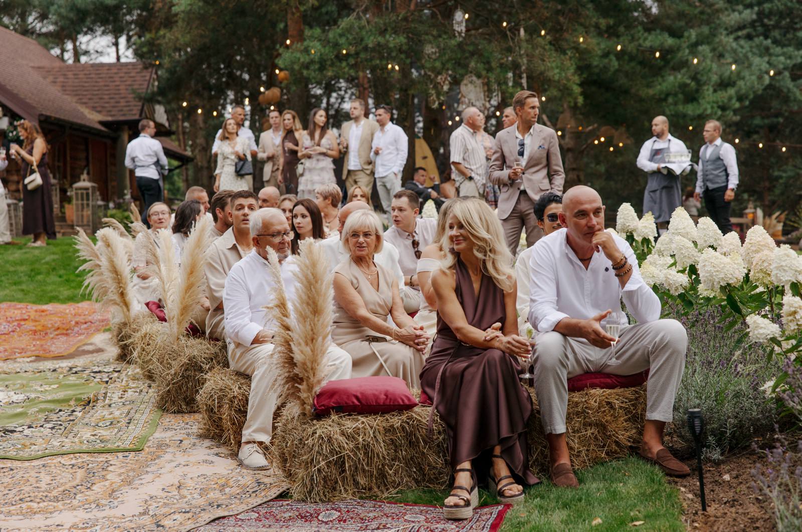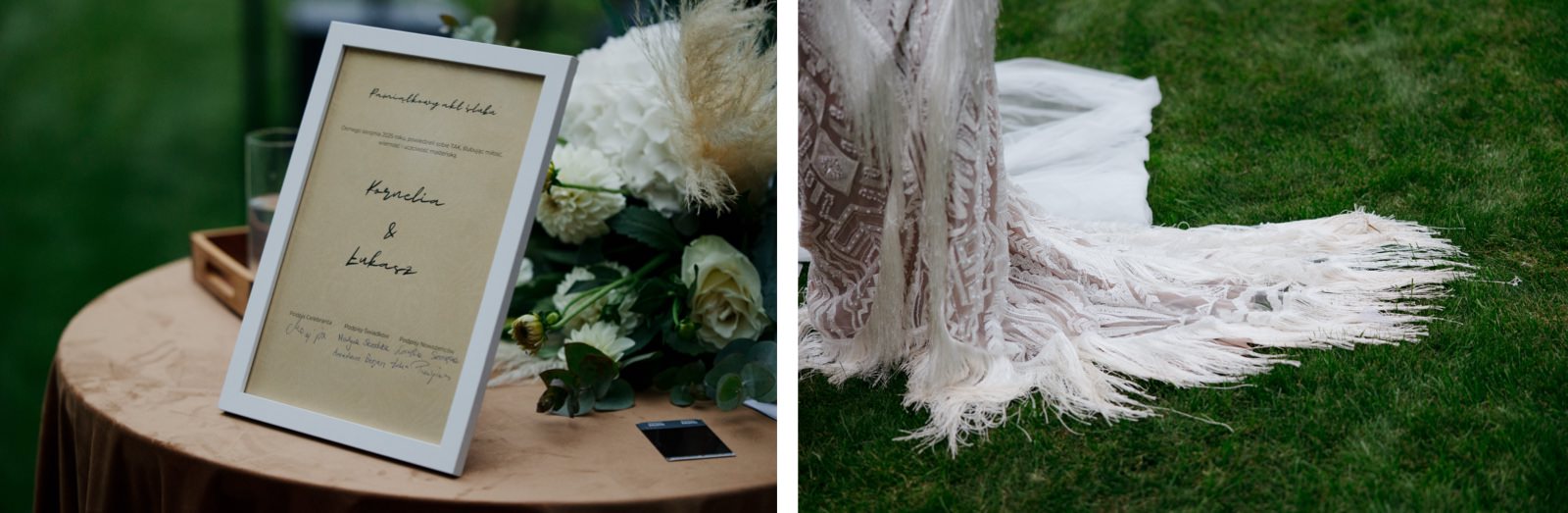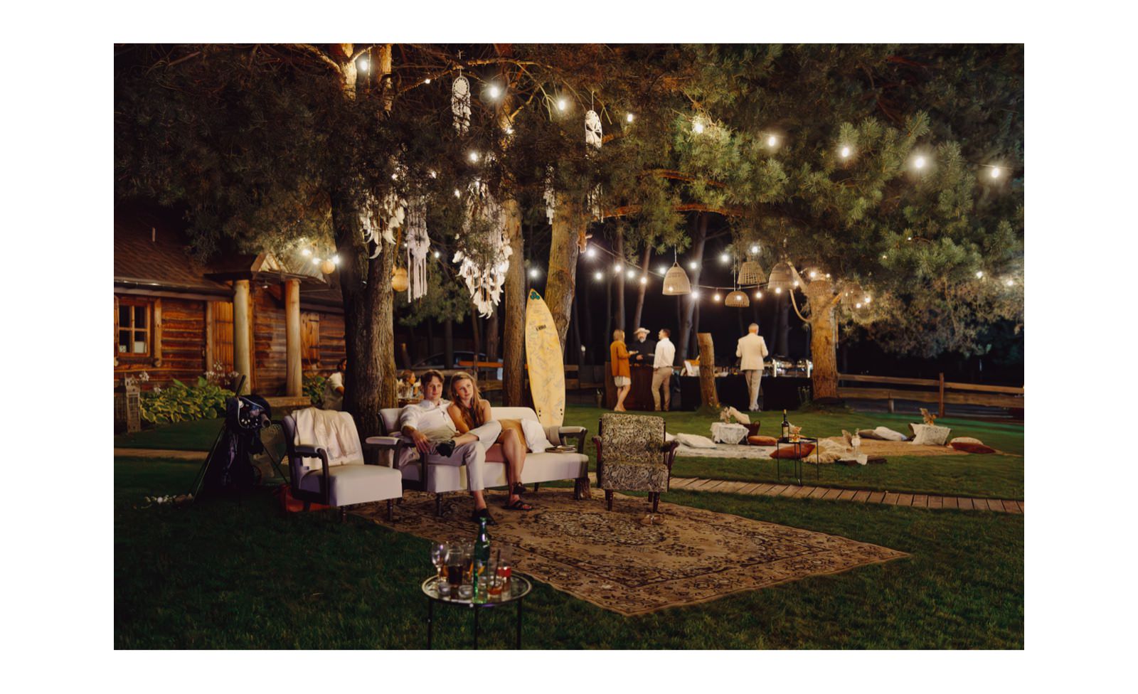 Był więc domek na drzewie, w którym przygotowywały się dziewczyny. Była najpiękniejsza panna młoda w najpiękniejszej sukni ślubnej boho z frędzlami i koronką. Zamiast tradycyjnego bukietu - wachlarz z trawy pampasowej. I pan młody w eleganckim beżu. Kompleksowo przygotowany teren na ceremonię przy ostatnich promieniach słońca, z widokiem na rzekę. Barwne dywany na świeżo skoszonej trawie, goście siedzący na snopkach siana. Tańce pod gwiazdami i totalny luz. Prywatna działka, basen i chill w rytmach elektroniki.