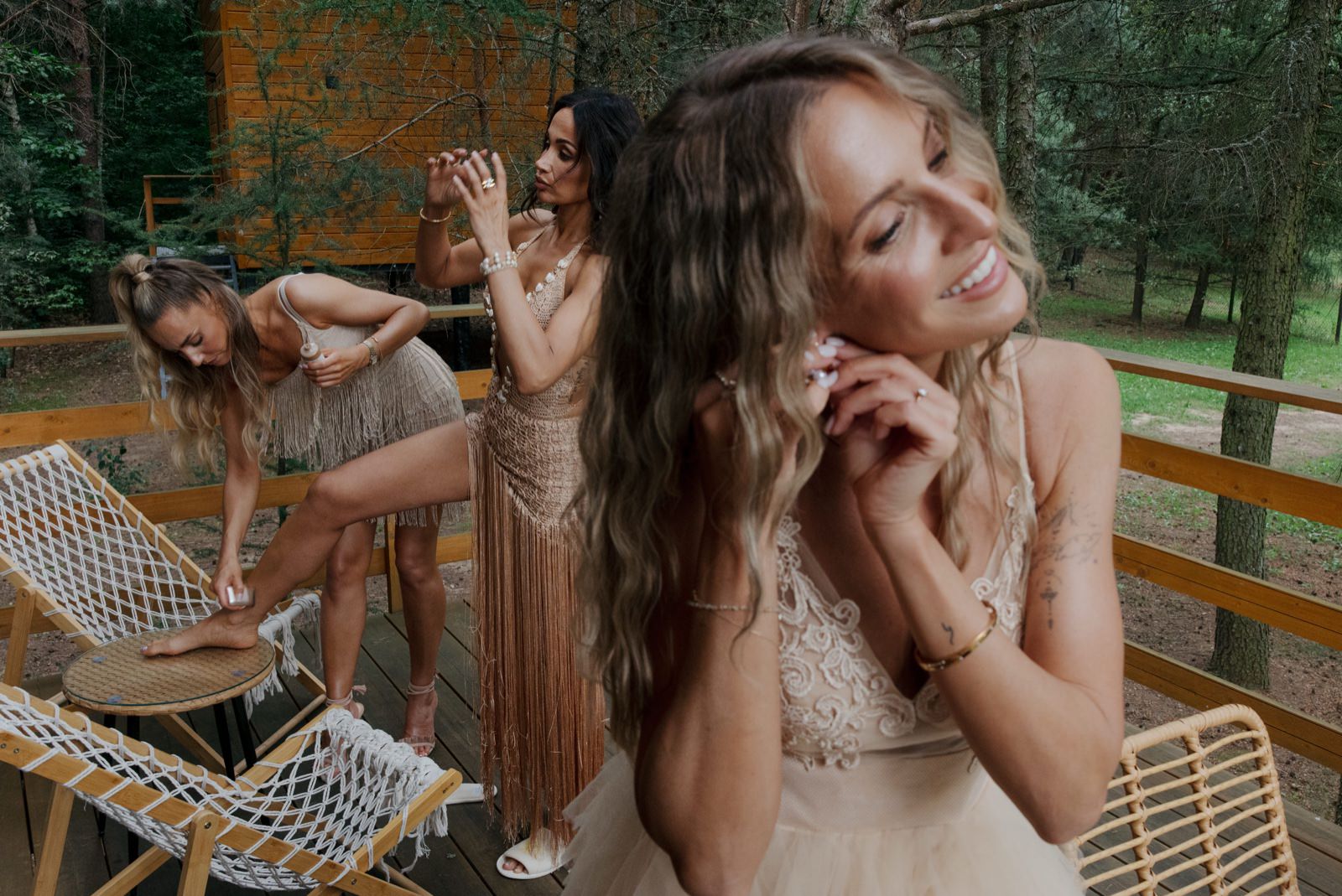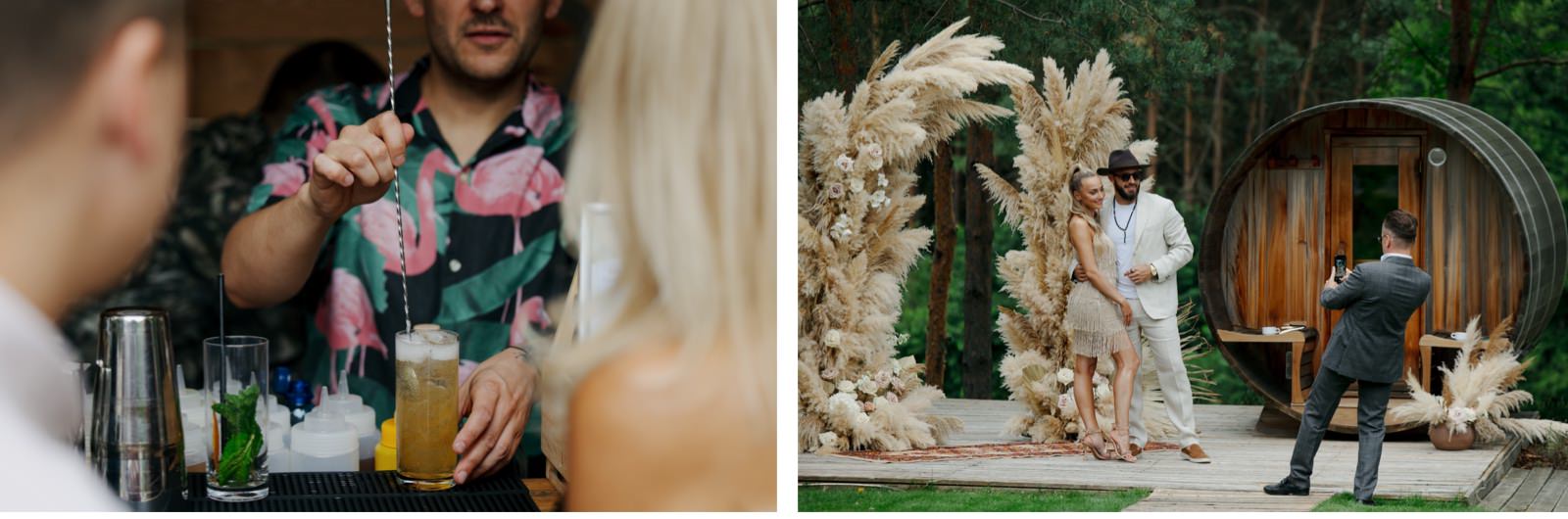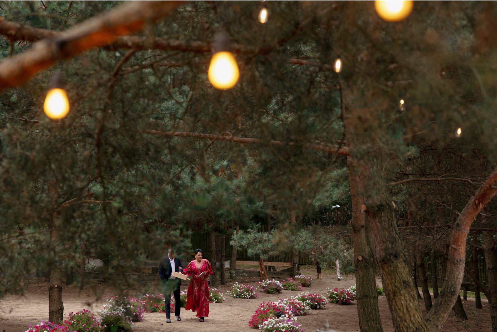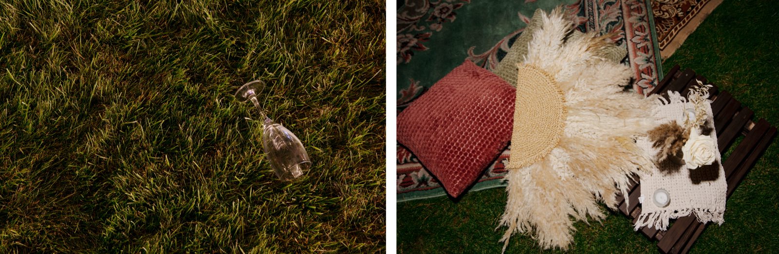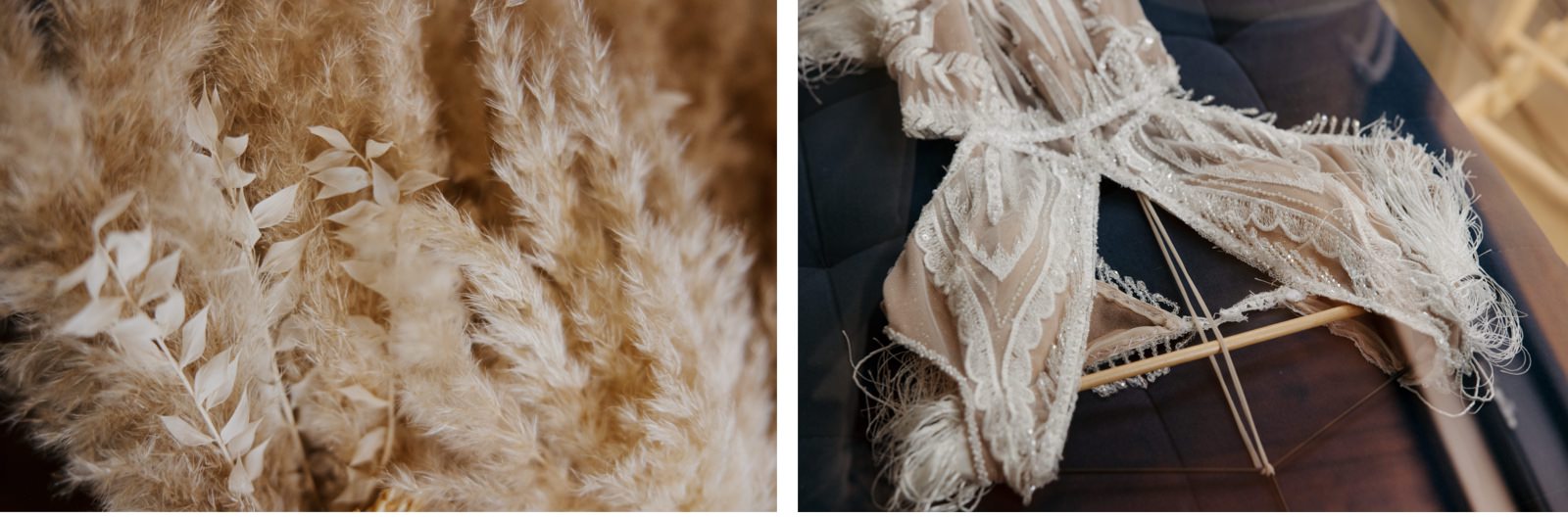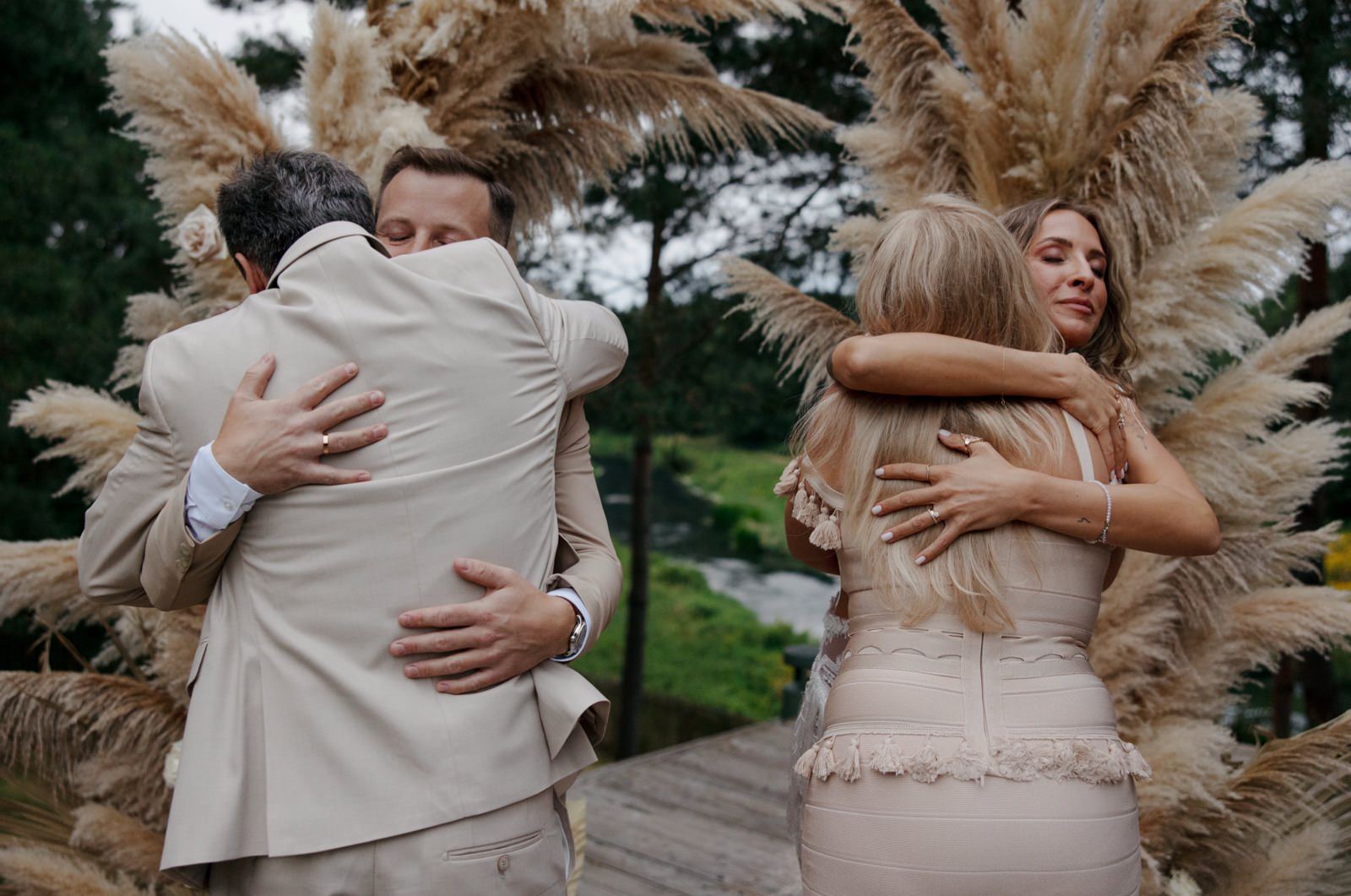 Był więc domek na drzewie, w którym przygotowywały się dziewczyny. Była najpiękniejsza panna młoda w najpiękniejszej sukni ślubnej boho z frędzlami i koronką. Zamiast tradycyjnego bukietu - wachlarz z trawy pampasowej. I pan młody w eleganckim beżu. Kompleksowo przygotowany teren na ceremonię przy ostatnich promieniach słońca, z widokiem na rzekę. Barwne dywany na świeżo skoszonej trawie, goście siedzący na snopkach siana. Tańce pod gwiazdami i totalny luz. Prywatna działka, basen i chill w rytmach elektroniki.