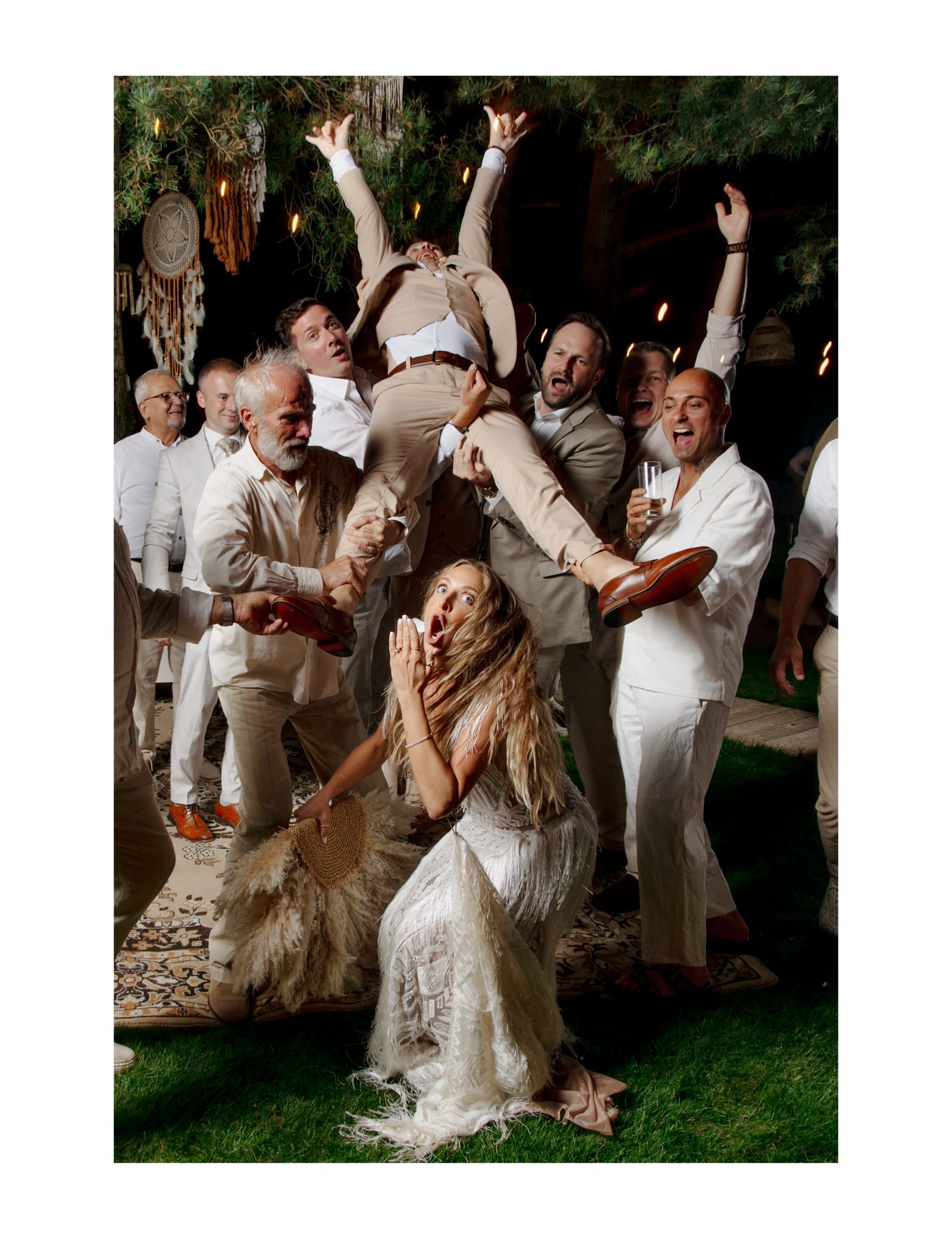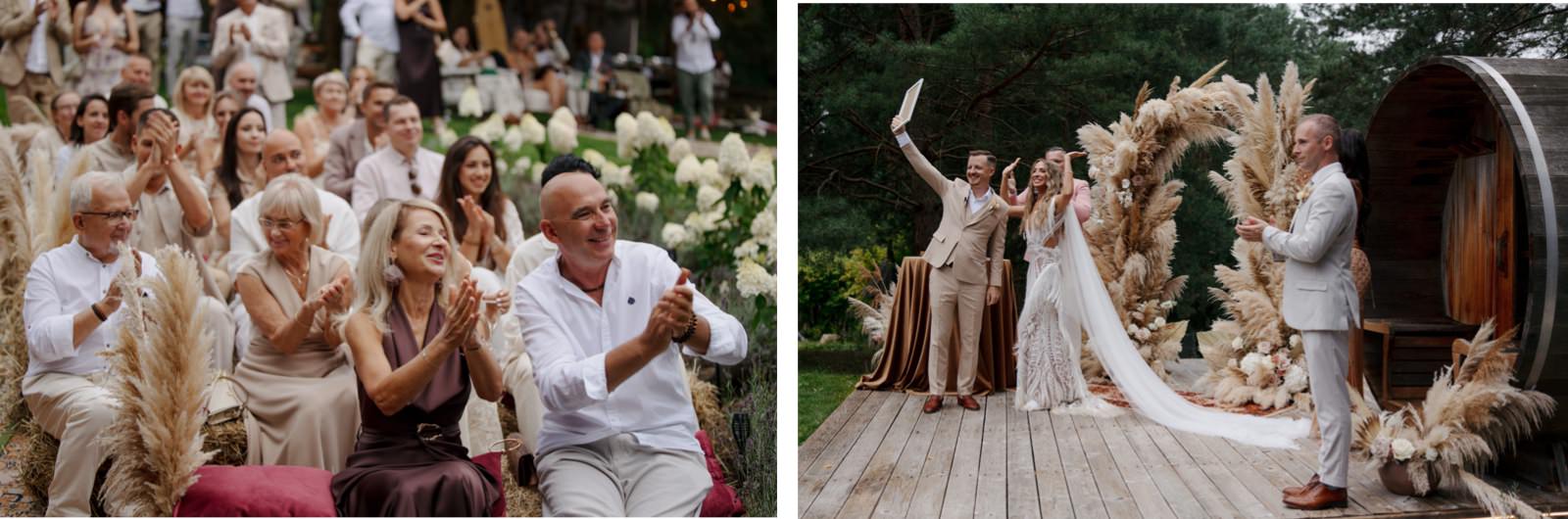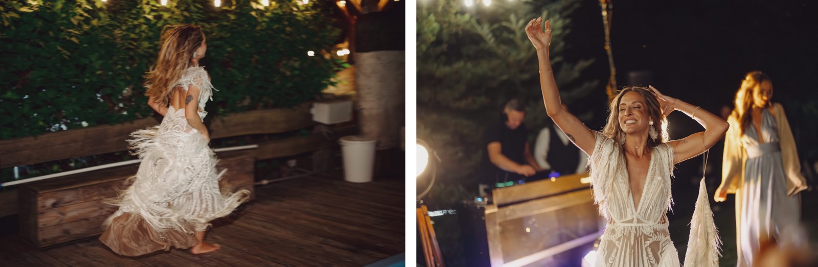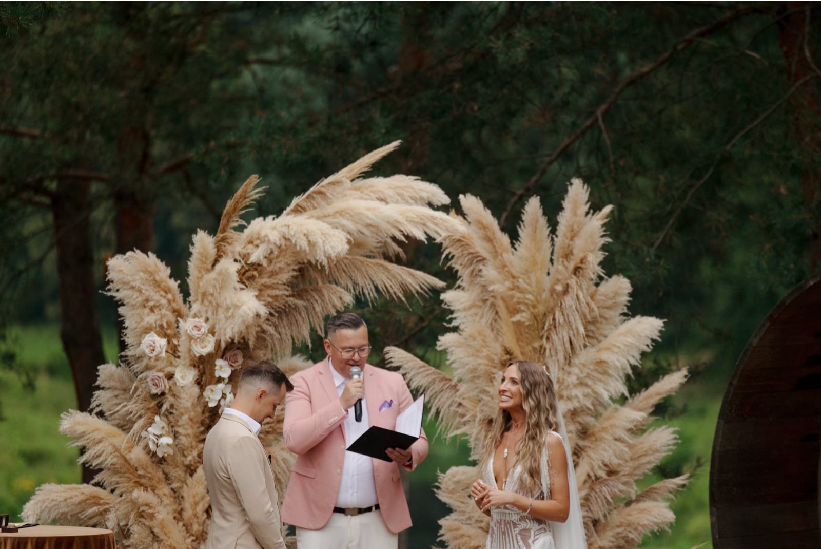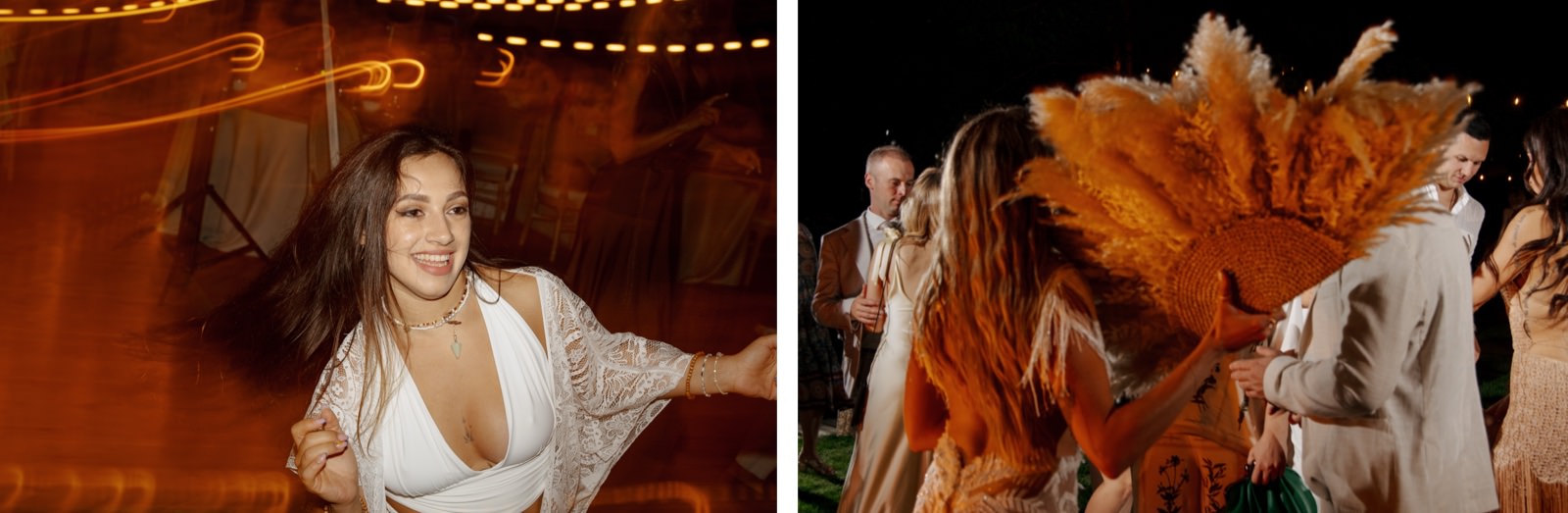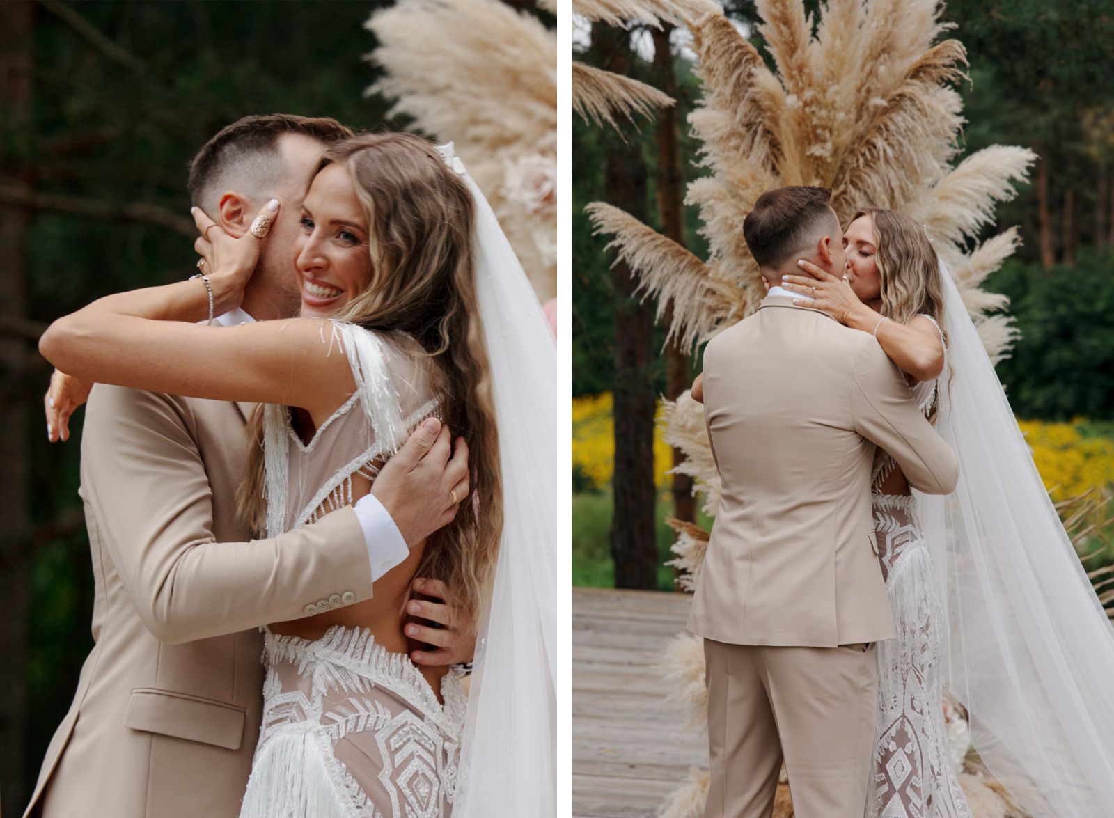 Był więc domek na drzewie, w którym przygotowywały się dziewczyny. Była najpiękniejsza panna młoda w najpiękniejszej sukni ślubnej boho z frędzlami i koronką. Zamiast tradycyjnego bukietu - wachlarz z trawy pampasowej. I pan młody w eleganckim beżu. Kompleksowo przygotowany teren na ceremonię przy ostatnich promieniach słońca, z widokiem na rzekę. Barwne dywany na świeżo skoszonej trawie, goście siedzący na snopkach siana. Tańce pod gwiazdami i totalny luz. Prywatna działka, basen i chill w rytmach elektroniki.
