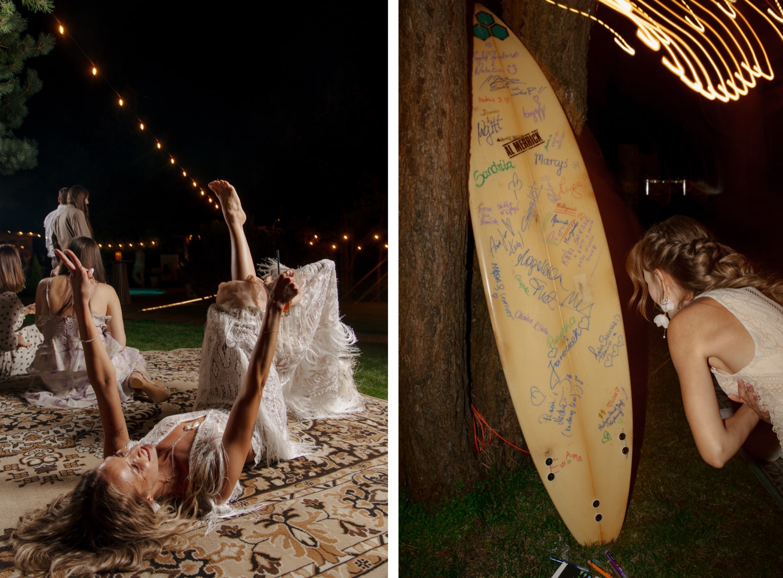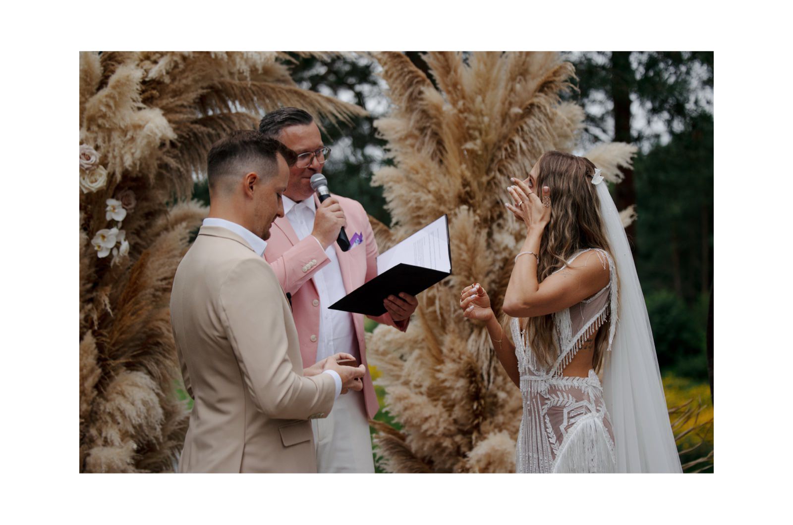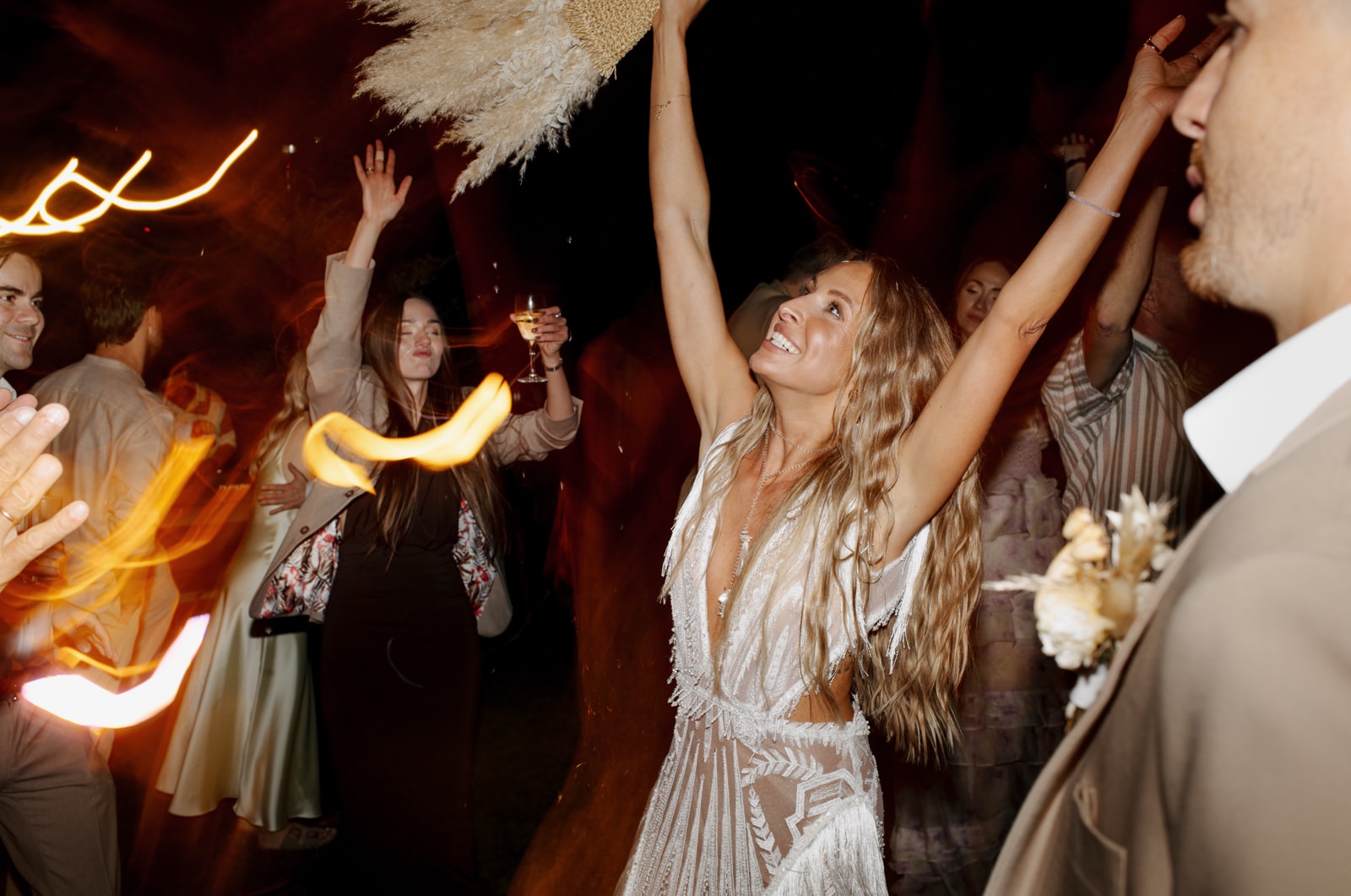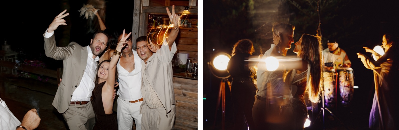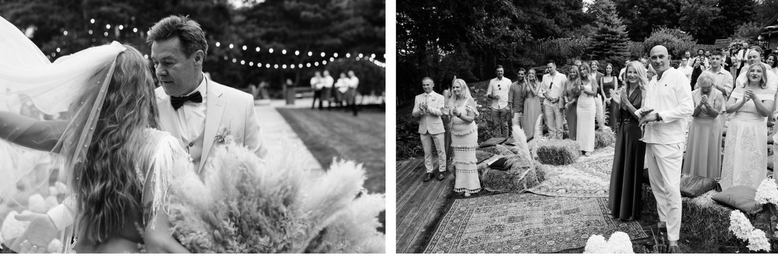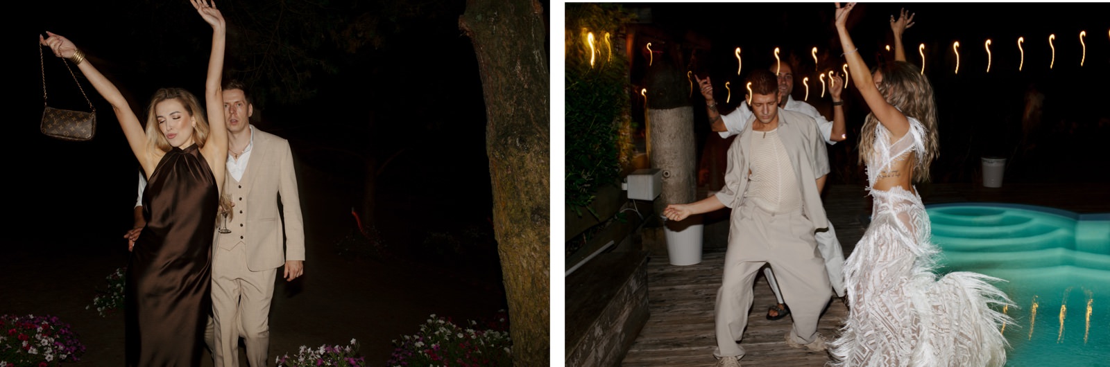 Był więc domek na drzewie, w którym przygotowywały się dziewczyny. Była najpiękniejsza panna młoda w najpiękniejszej sukni ślubnej boho z frędzlami i koronką. Zamiast tradycyjnego bukietu - wachlarz z trawy pampasowej. I pan młody w eleganckim beżu. Kompleksowo przygotowany teren na ceremonię przy ostatnich promieniach słońca, z widokiem na rzekę. Barwne dywany na świeżo skoszonej trawie, goście siedzący na snopkach siana. Tańce pod gwiazdami i totalny luz. Prywatna działka, basen i chill w rytmach elektroniki.
