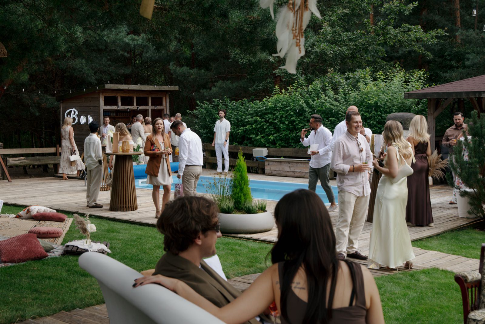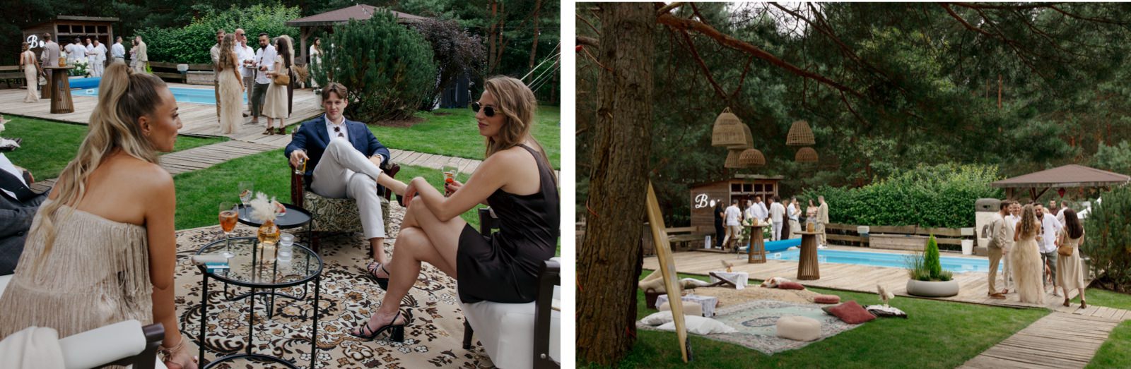 Prywatna działka na której zorganizowano uroczystość to był strzał w dziesiątke! Miejsce podzielono na strefy chill, miejsce ceremonii, bar nad basenem i namiot.