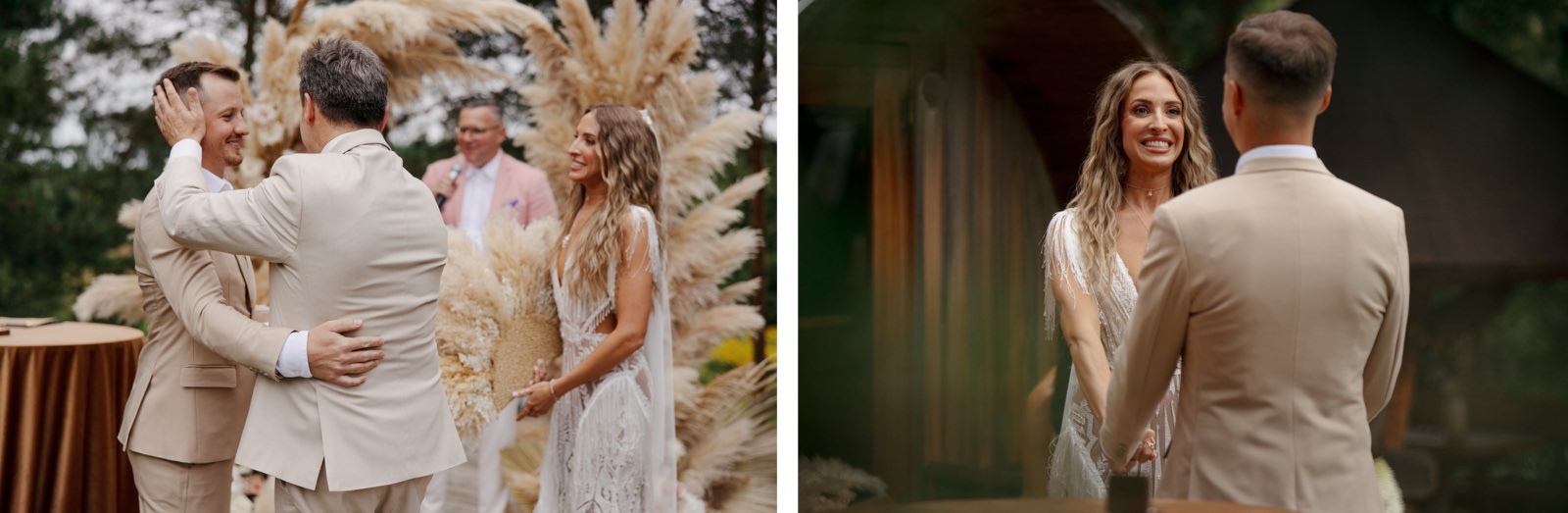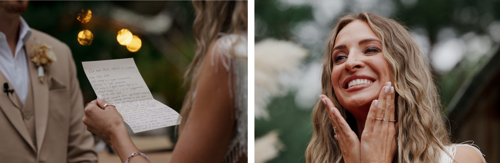Styl boho i wesele pod gołym niebem idealnie współgrają z fotografią reportażową. To właśnie tutaj powstają kadry niepozowane, naturalne i pełne ruchu. Suknia unoszona przez wiatr, śmiech podczas przemówień, bose stopy na trawie, uścisk dłoni tuż przed przysięgą - to momenty, których nie da się wyreżyserować.