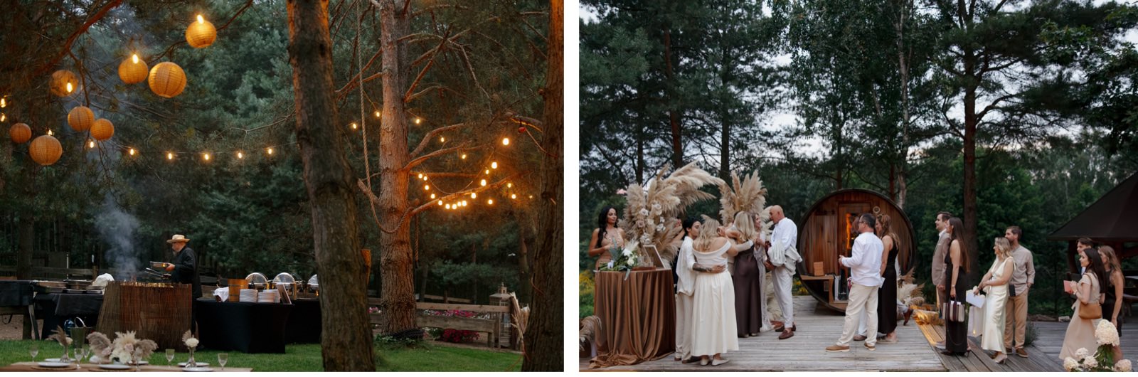 Wesele pod gołym niebem daje przestrzeń do świętowania bez sztywnych ram - boso na trawie, przy dźwiękach muzyki i pod rozgwieżdżonym niebem. Choć brzmi romantycznie wymaga dobrego planu. Namiot na wypadek deszczu, odpowiednie nagłośnienie i oświetlenie czy chociażby koce dla gości na chłodniejsze wieczory - o tych rzeczach musicie pomyśleć organizując wesele bez sali weselnej.